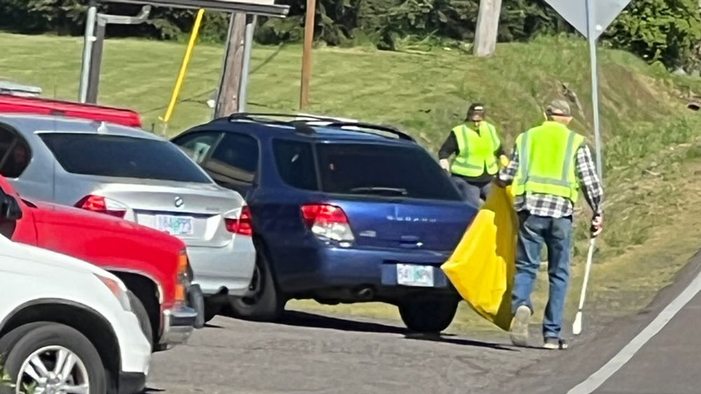 Many hands made light work during our semiannual road cleanup on April 25. Photo by Janet Peters.